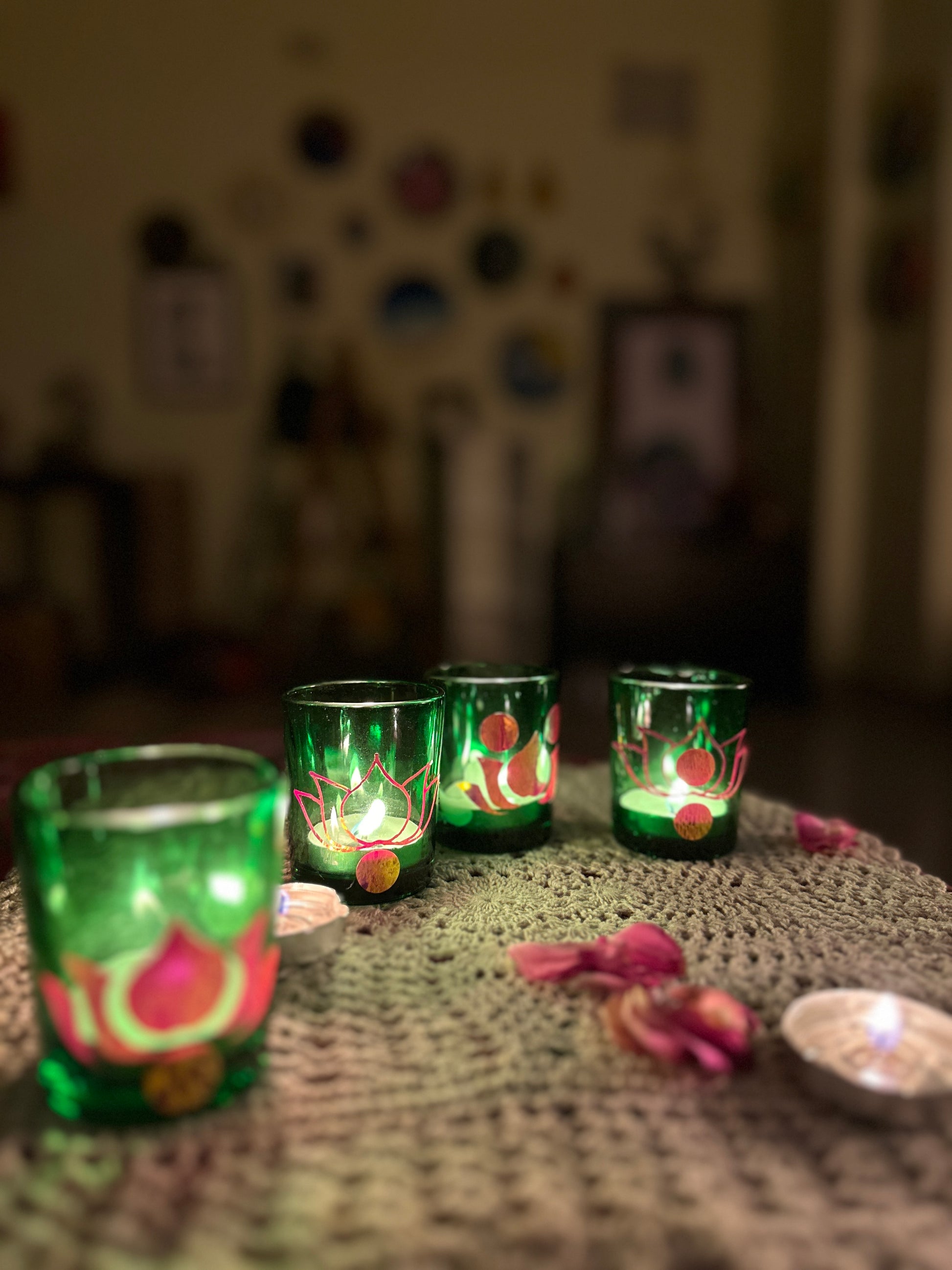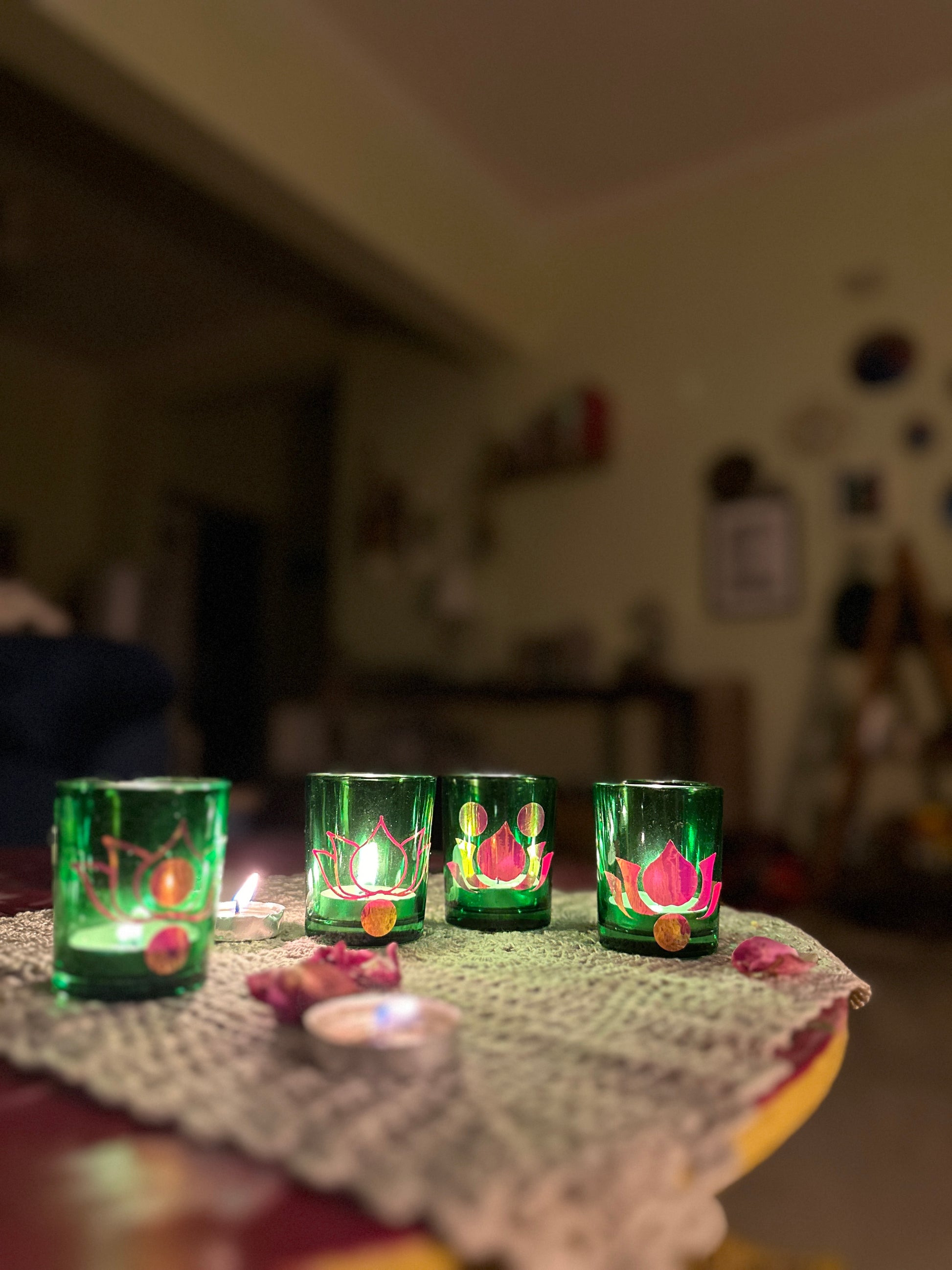 Our hand-painted glass candle holders are a reflection of tradition and artistry. Each piece tells a unique story, making it the perfect centerpiece for your home, radiating warmth and cultural charm. Light up your space with the luminous beauty of our ethnic motif glass candle holders.