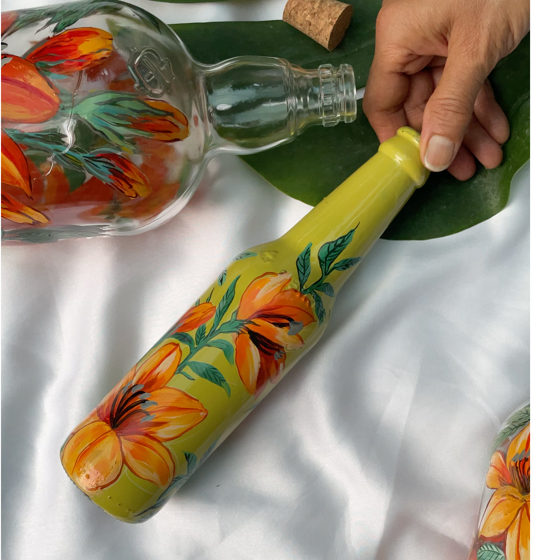Since each bottle is hand-painted and uniquely sourced, the exact bottle shape shown in the product image may sometimes be unavailable. In such cases, we will contact you with available bottle options to choose from before proceeding with your order.
