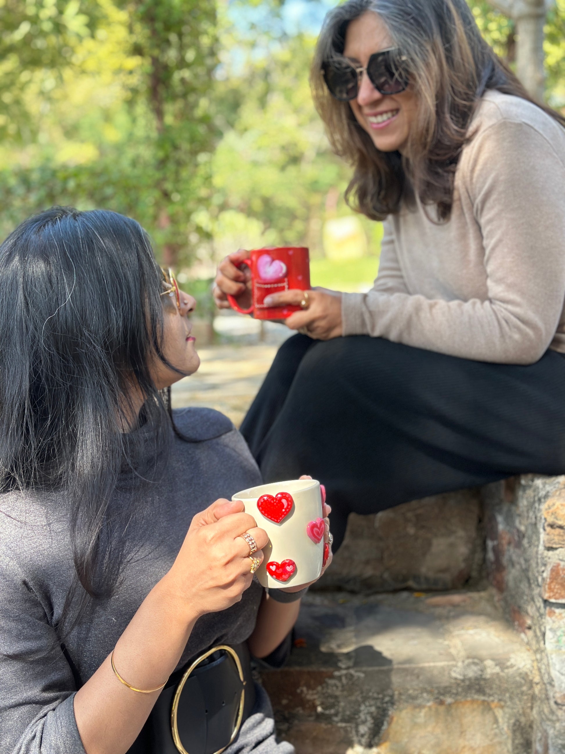 The neutral base makes it easy to pair with any space, while the playful hearts add just the right touch of warmth and romance. As with all hand-painted pieces, each mug carries slight variations, making every one truly one of a kind.