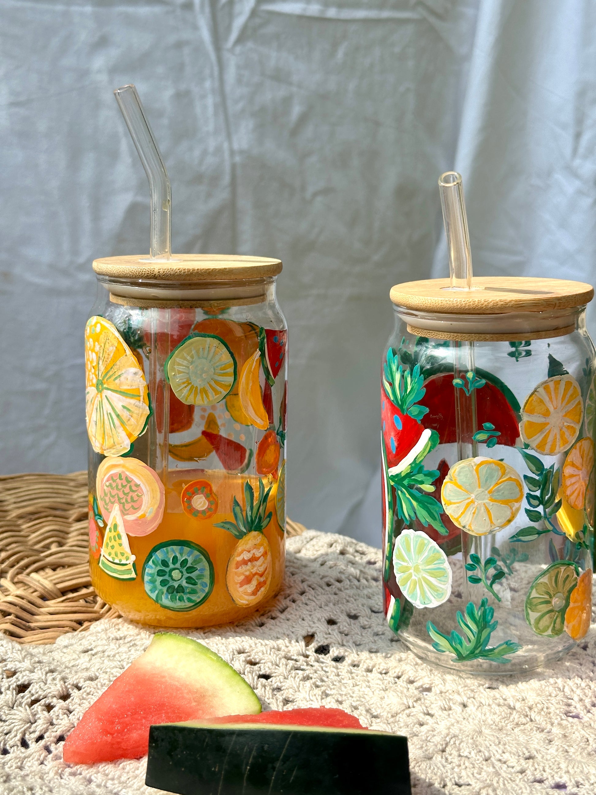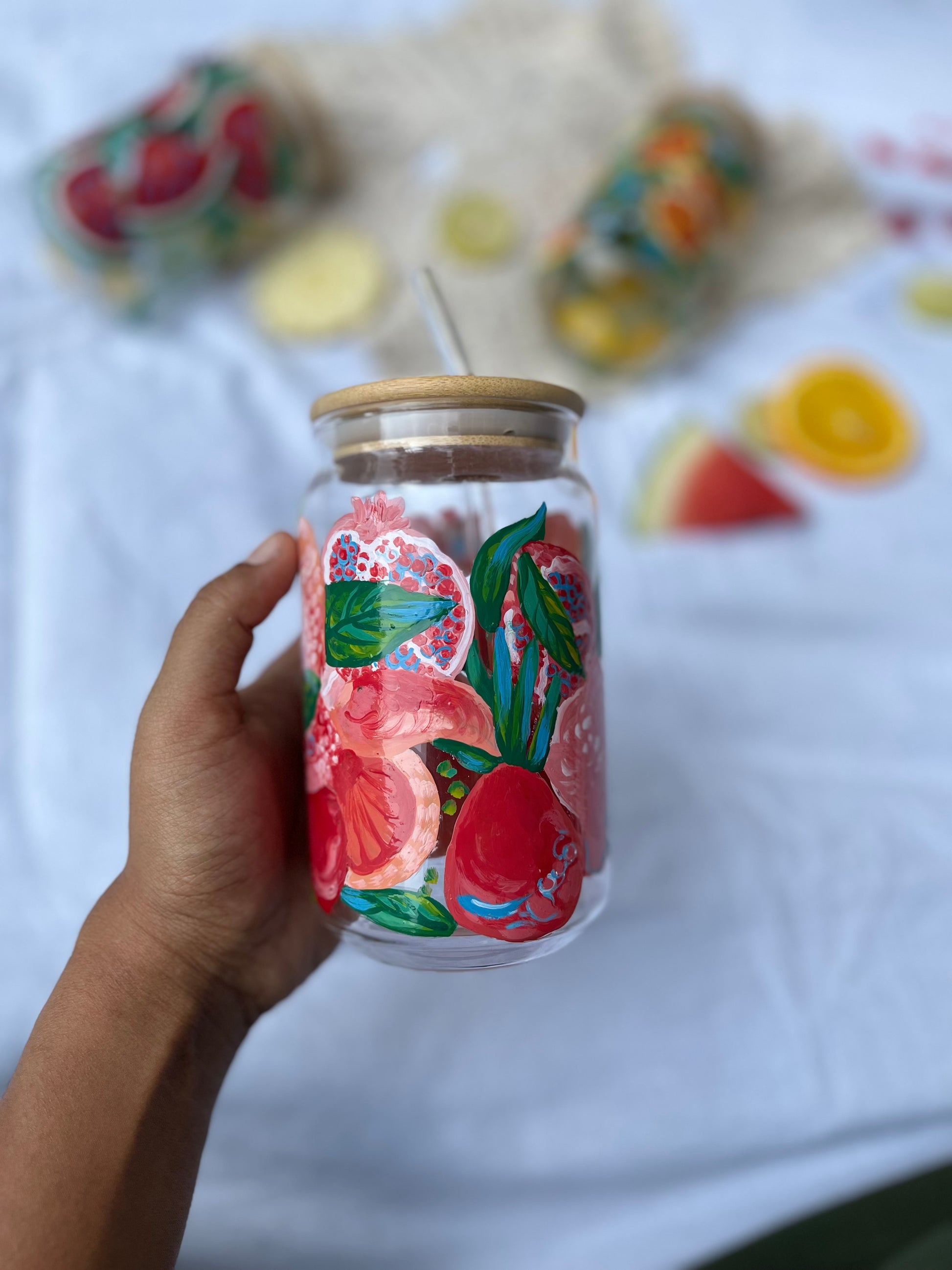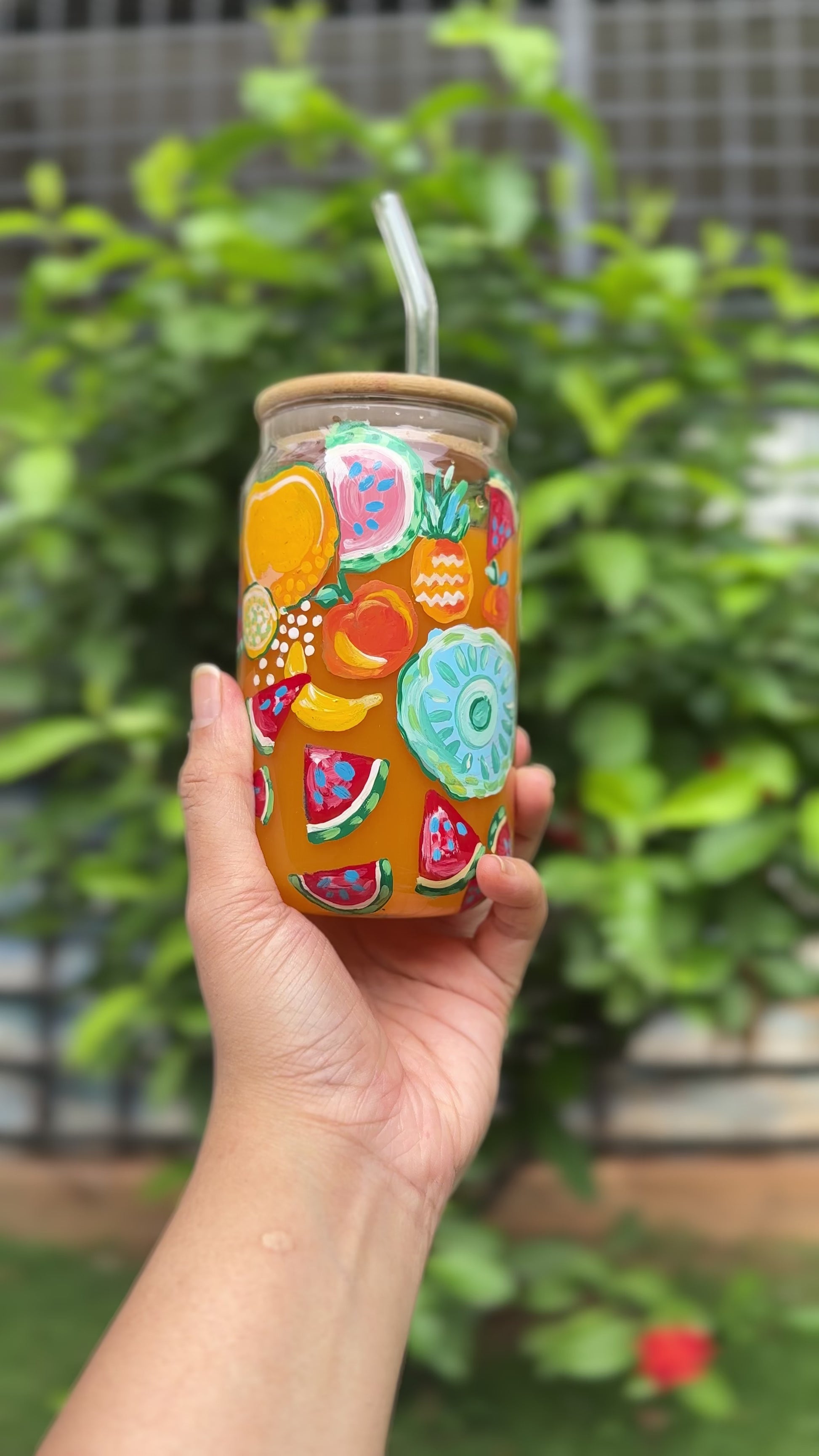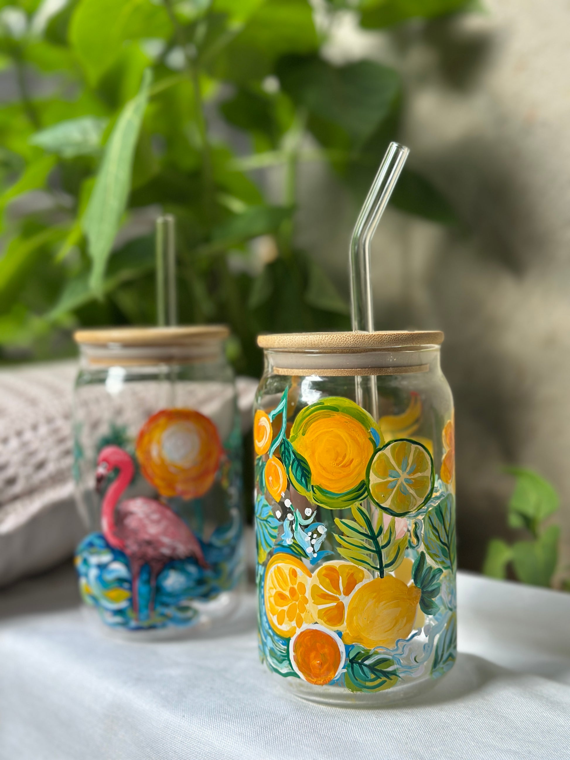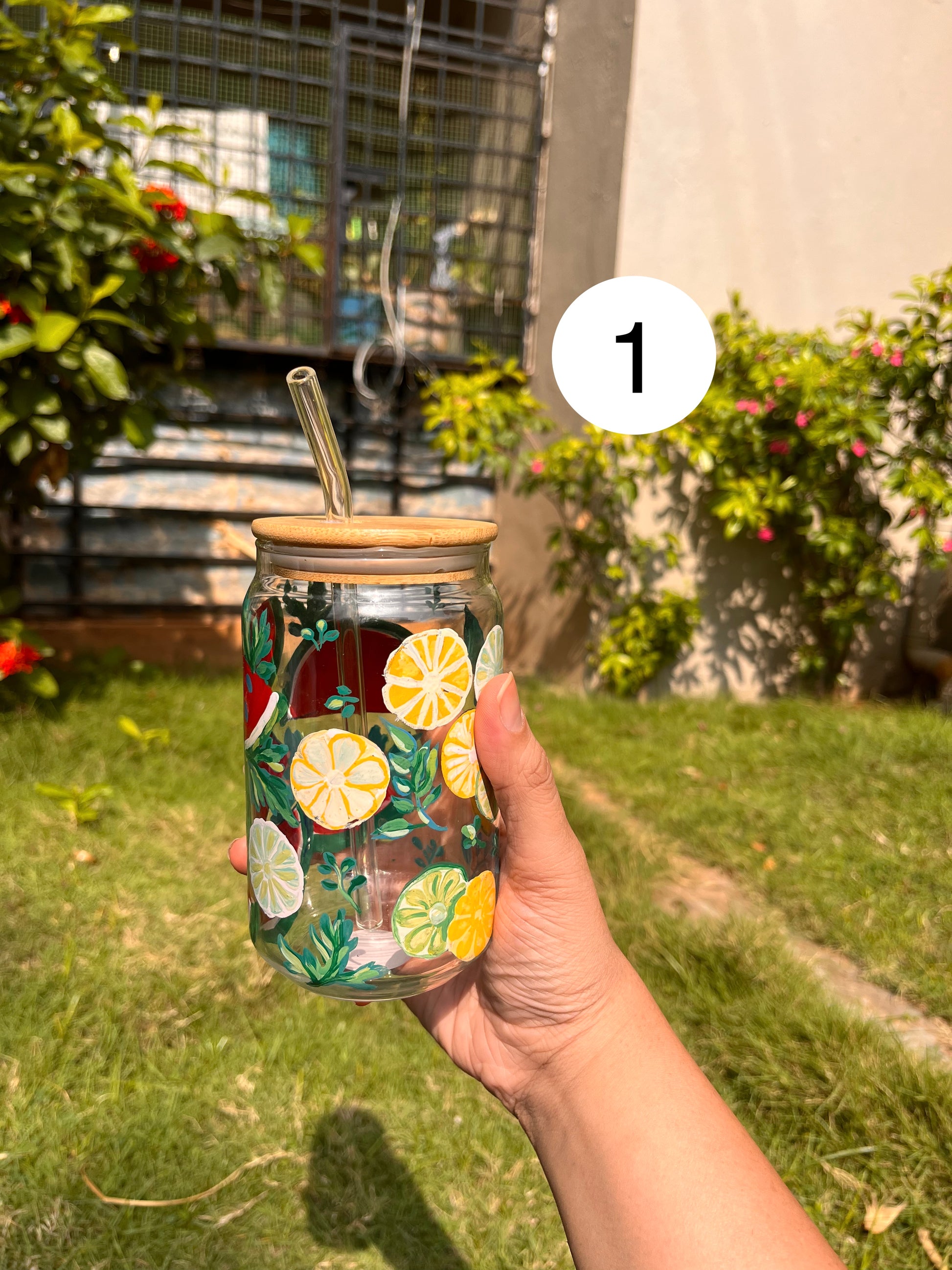 1.Comes with glass straw and wooden lid
