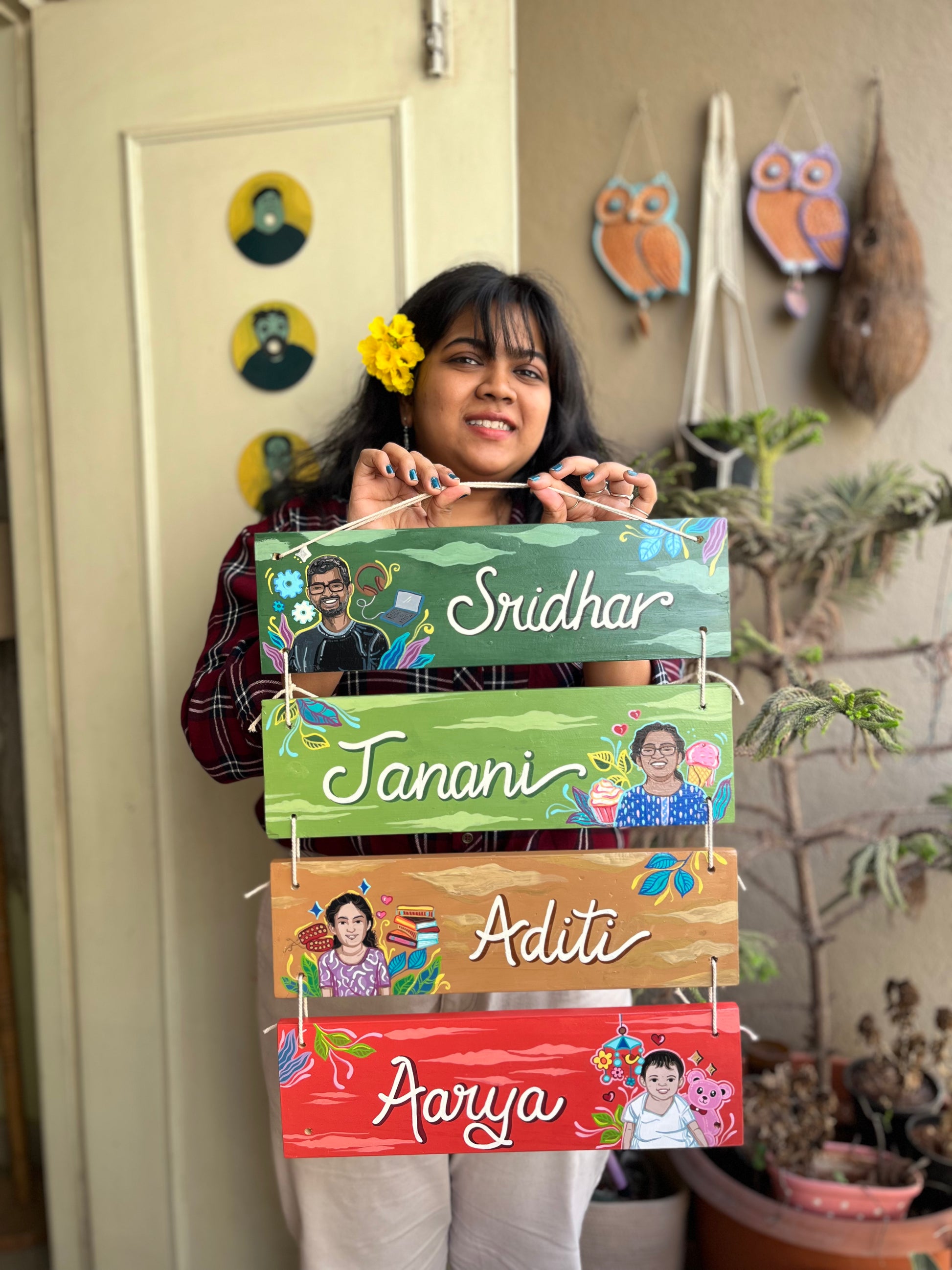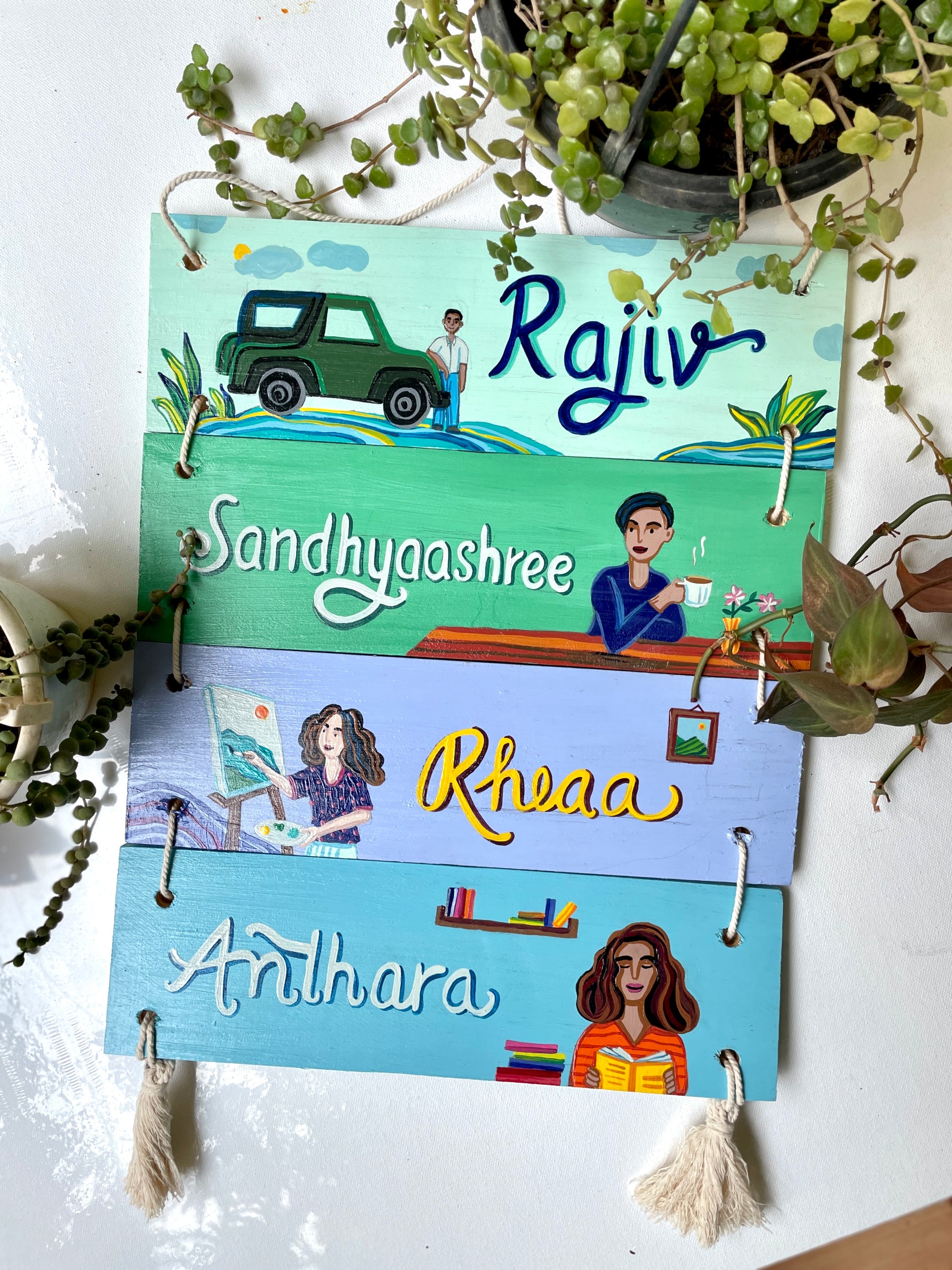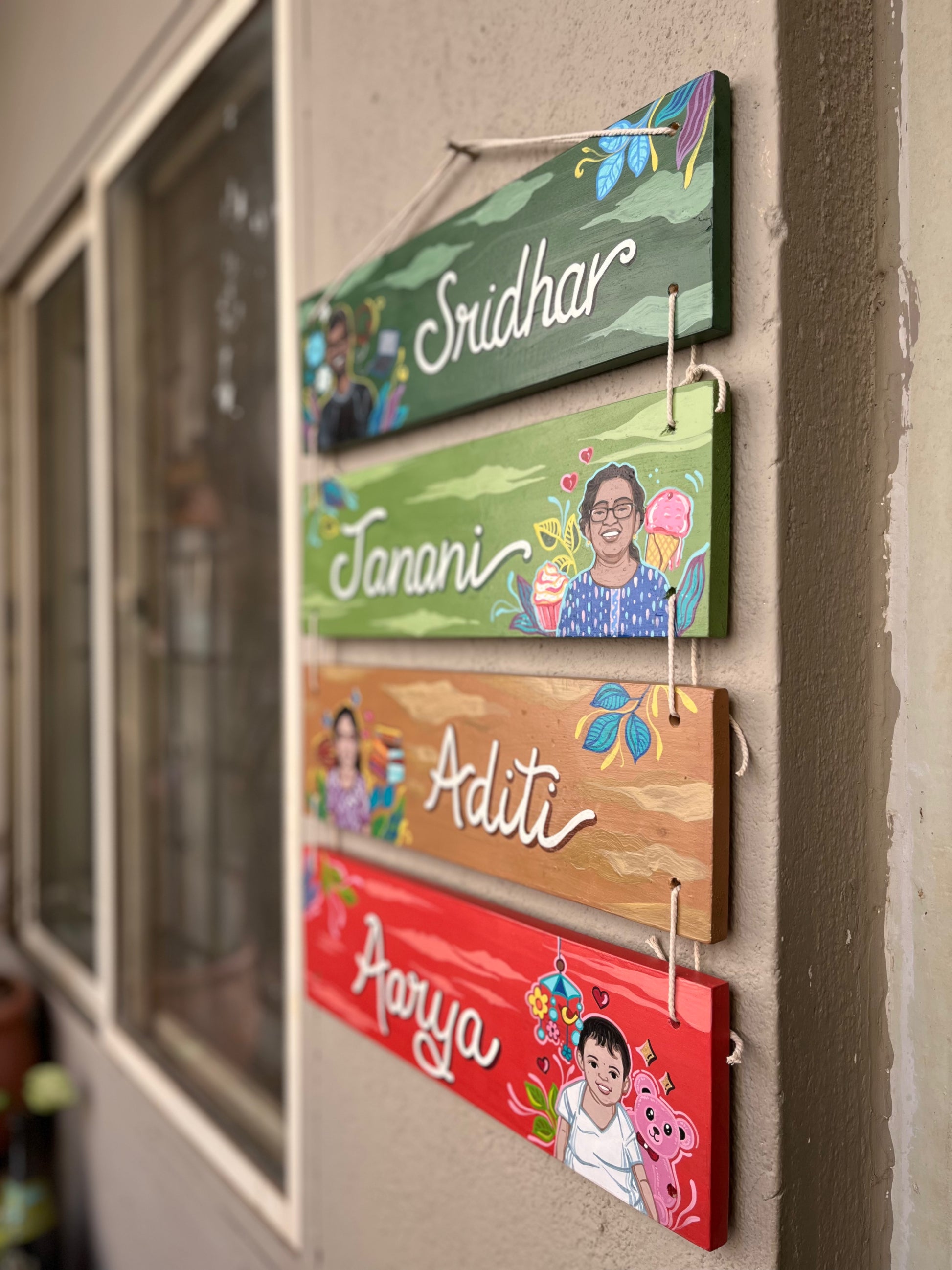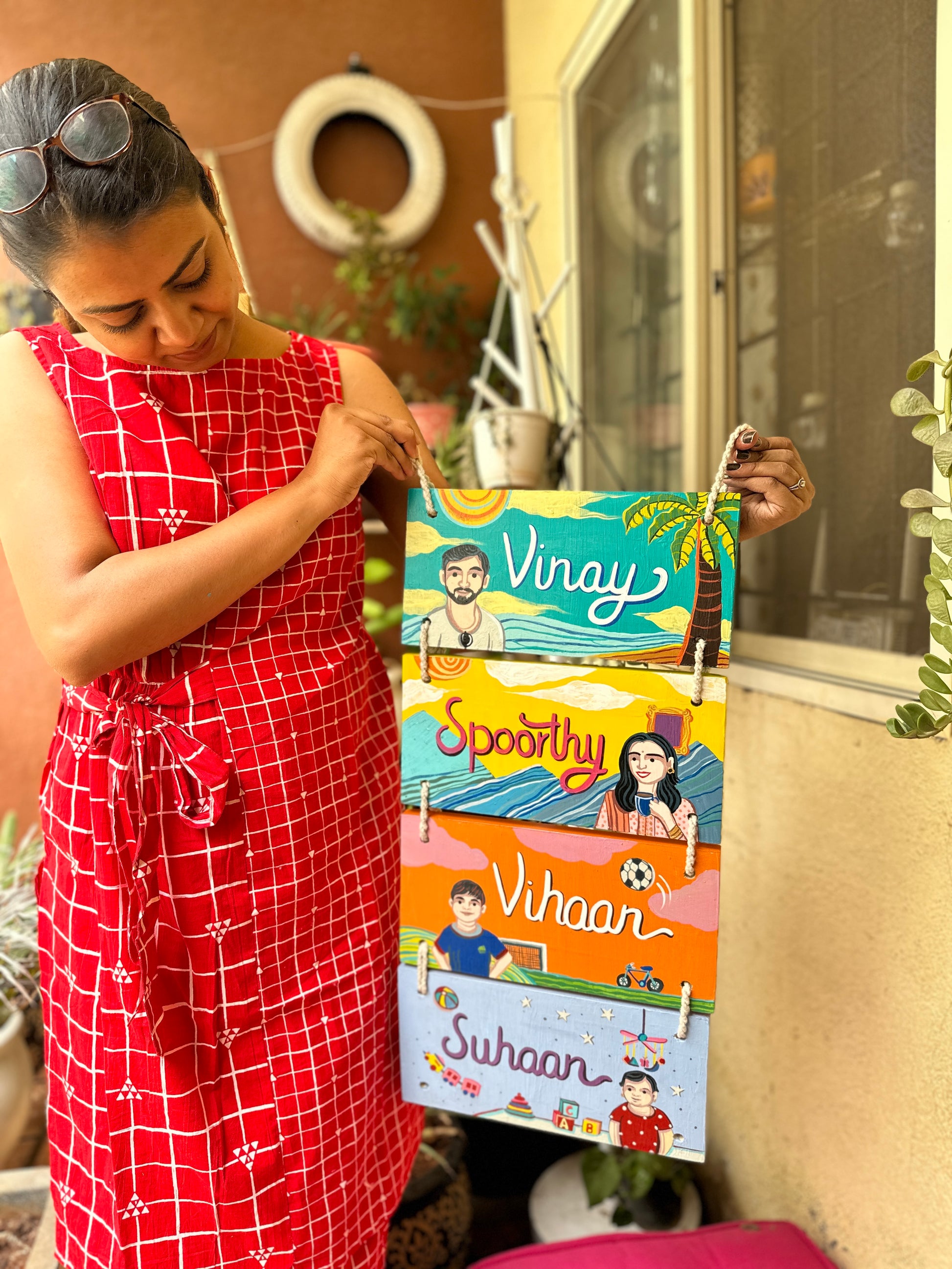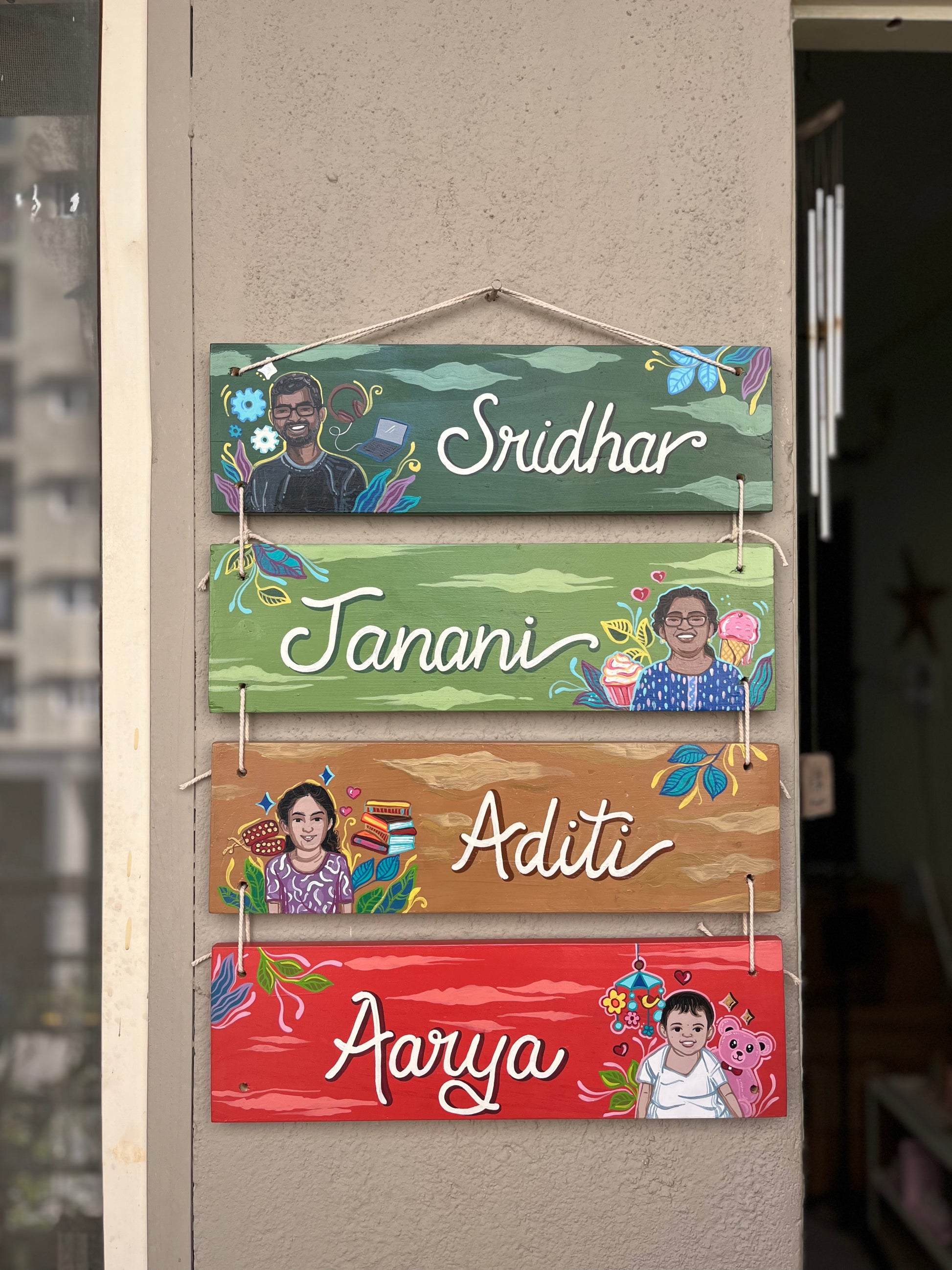 A colourful plank style name plate for your perfect family. Each plank can have the name of the family member and the house number / address.