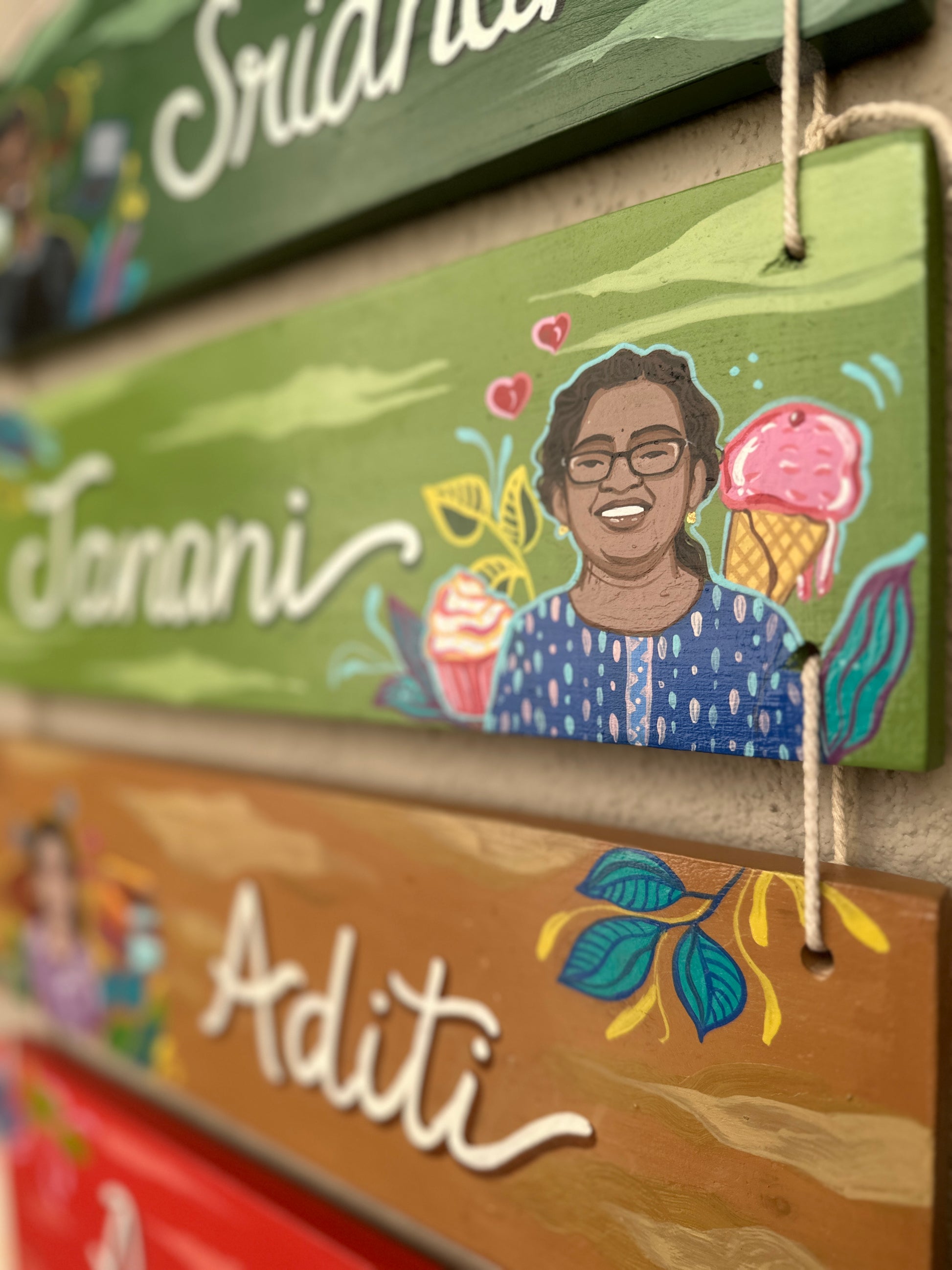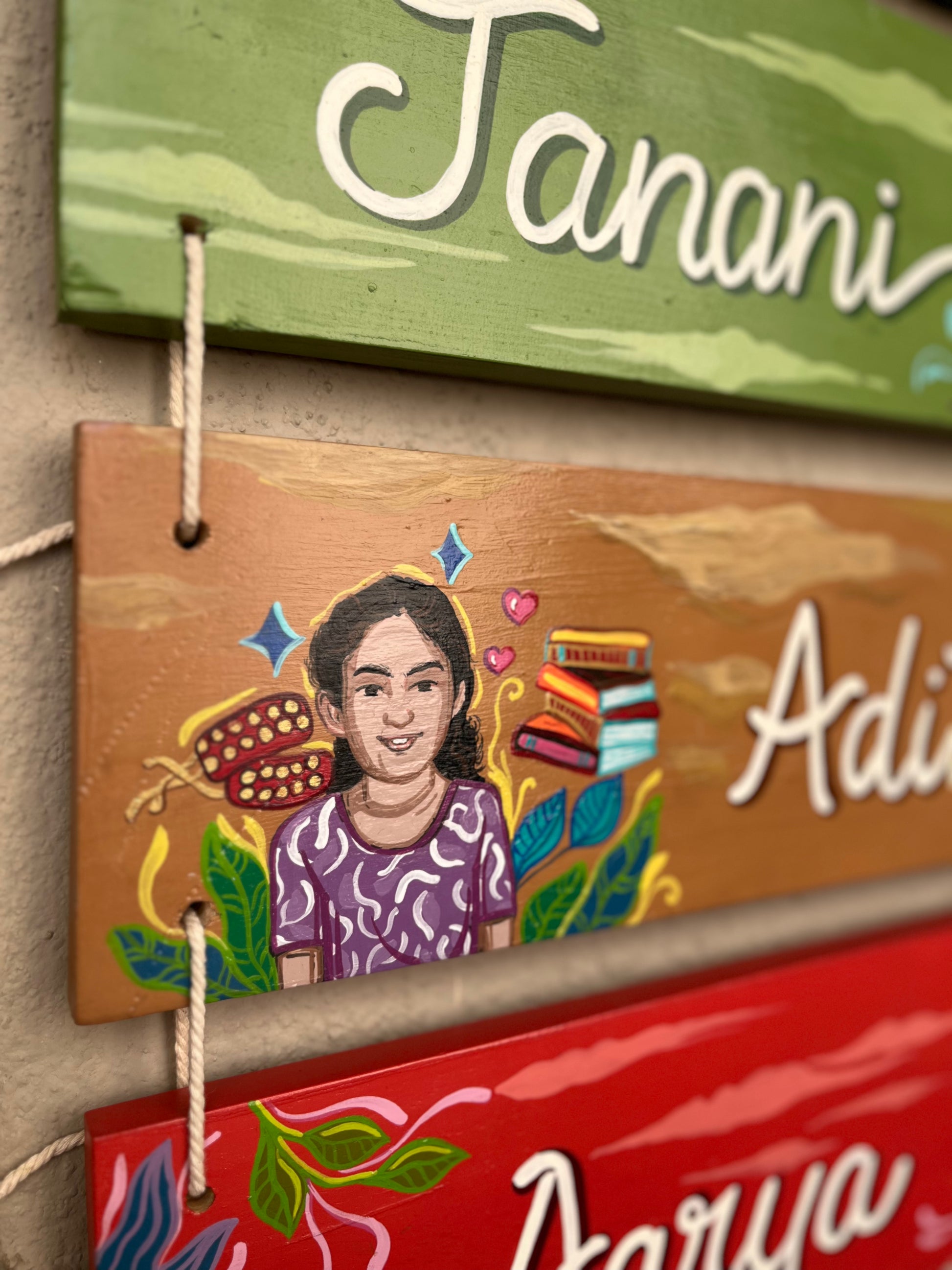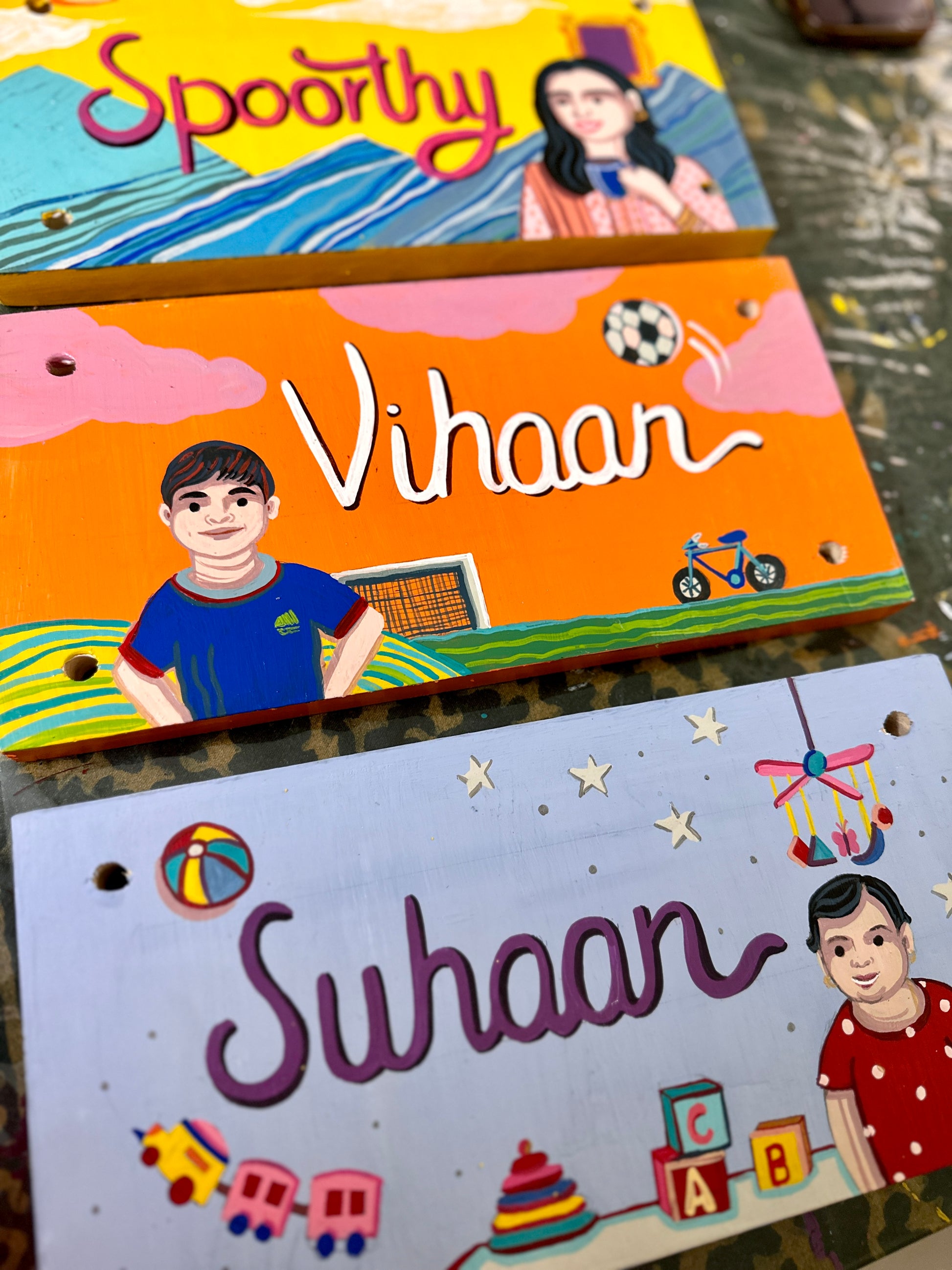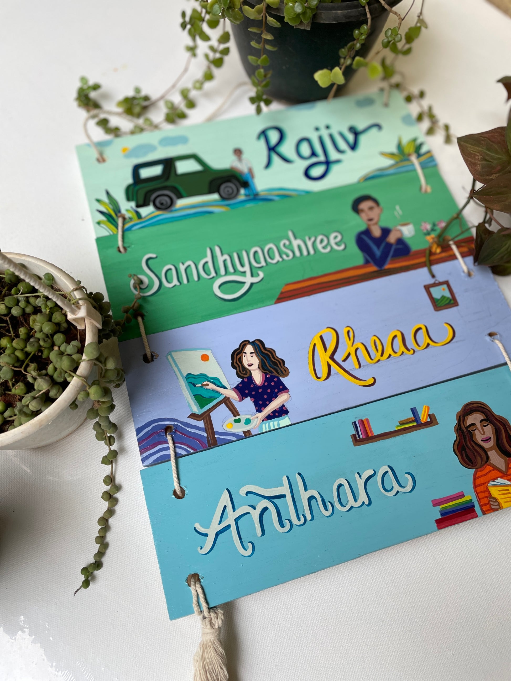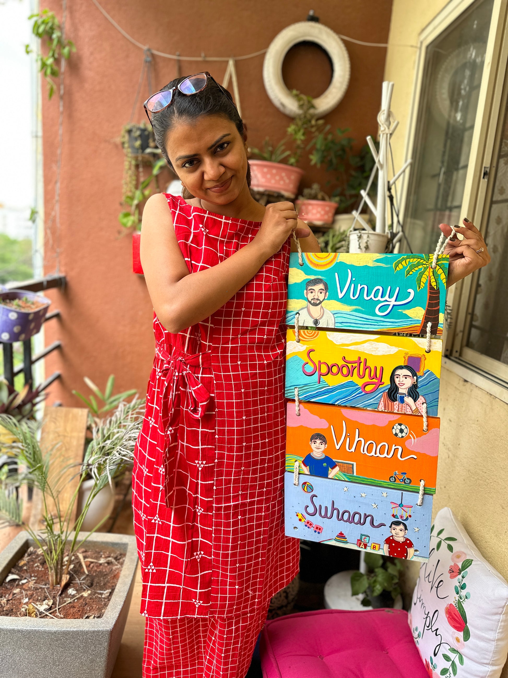 A colourful plank style name plate for your perfect family. Each plank can have the name of the family member and the house number / address.