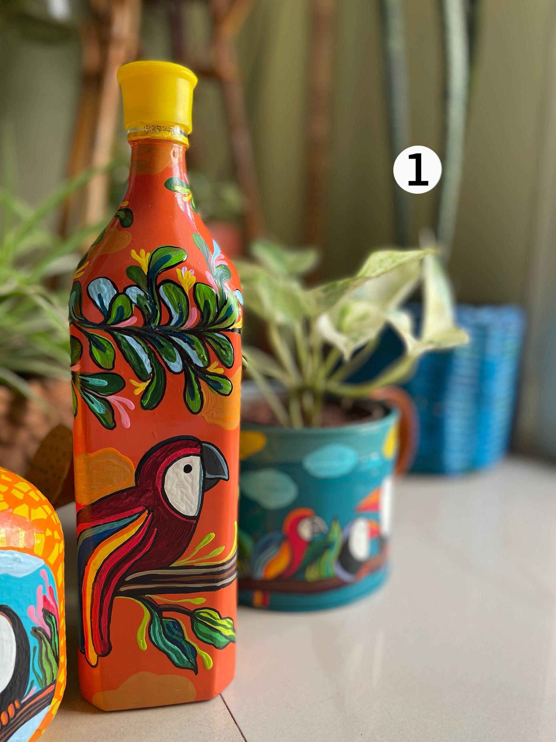 Since each bottle is hand-painted and uniquely sourced, the exact bottle shape shown in the product image may sometimes be unavailable. In such cases, we will contact you with available bottle options to choose from before proceeding with your order.