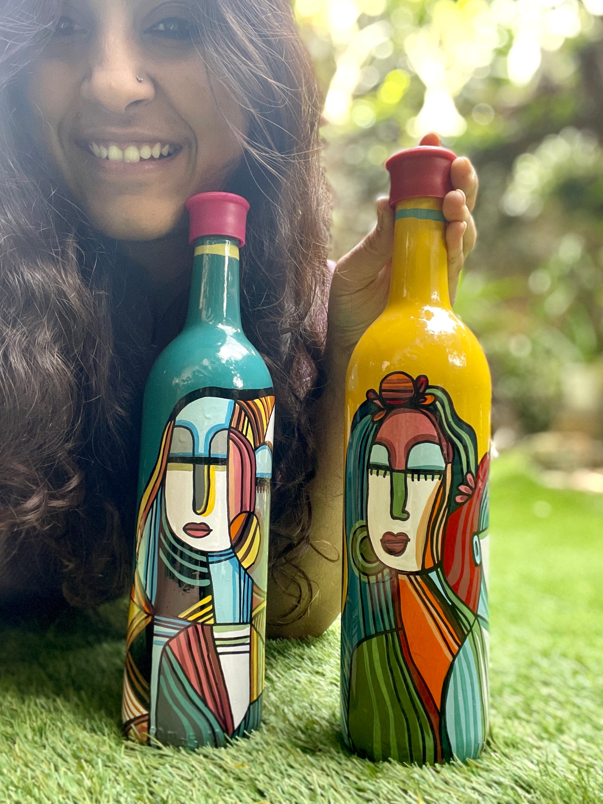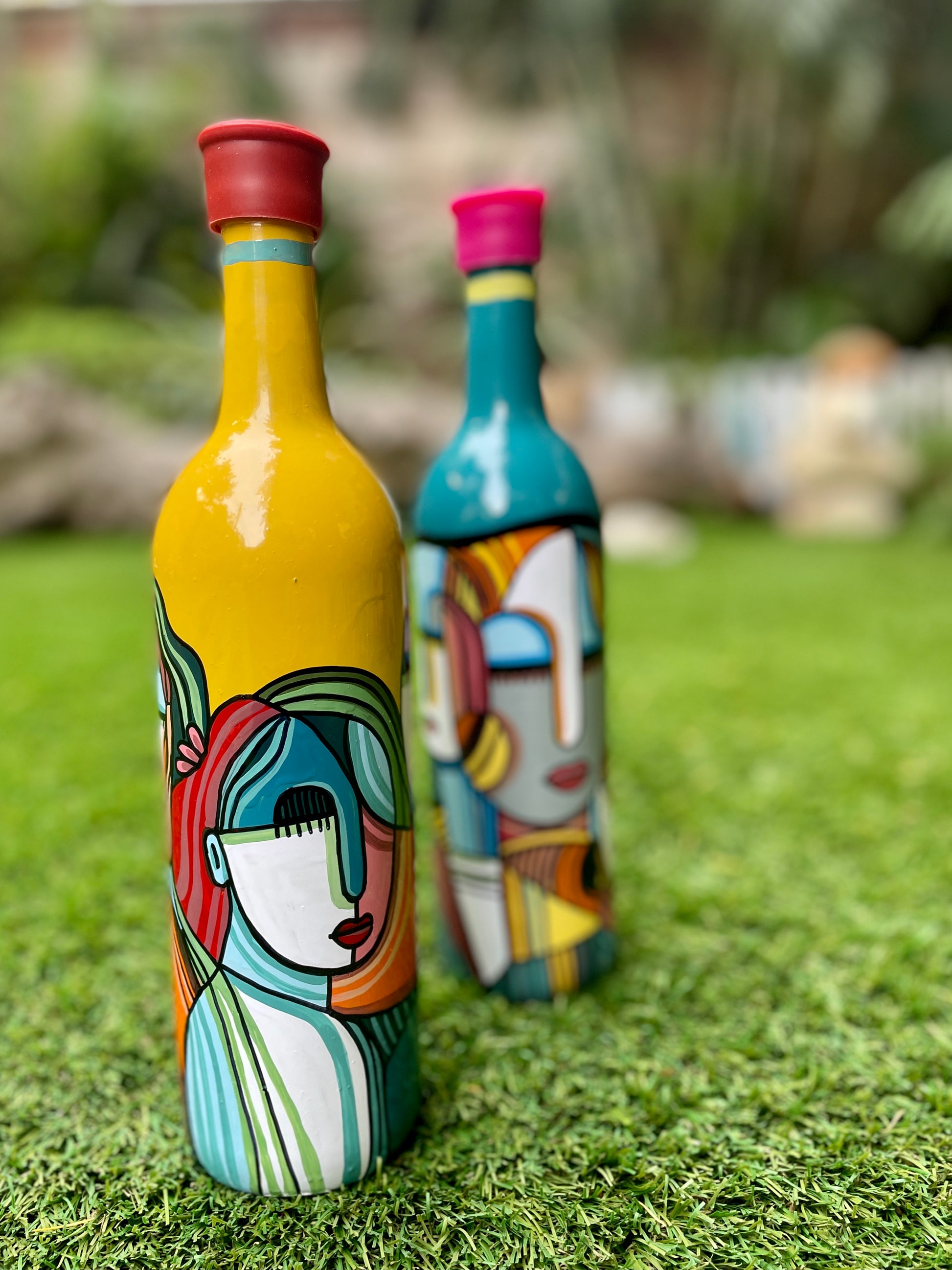 NOTE: Since each bottle is hand-painted and uniquely sourced, the exact bottle shape shown in the product image may sometimes be unavailable. In such cases, we will contact you with available bottle options to choose from before proceeding with your order.